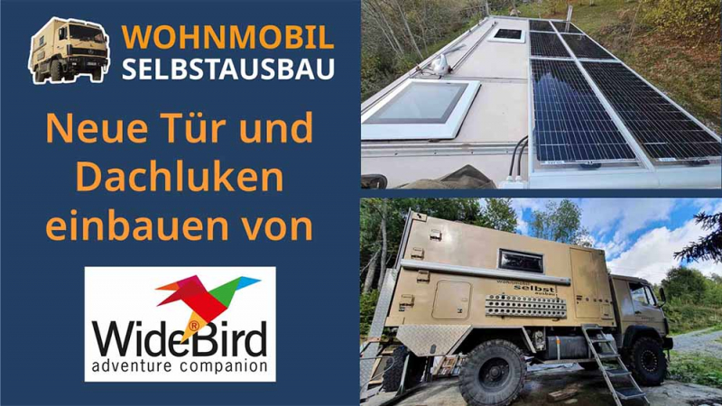 Neue Tür und Dachluken von Widebird einbauen