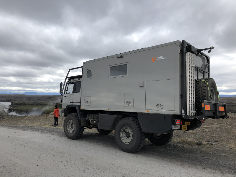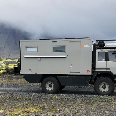 It took several years from starting to dream about an expedition camper to the actual decision to get one... ...after deciding to turn dream into reality we spent probably another 5 years of research before buying our STEYR base truck from EXCAP, and the another year before deciding on the cabin builder KRUGXP. The cabin building process took around a year with several iterations of optimizations, from adding a motorcycle rack to installing an outdoor kitchen...plus some add-ons like an air condition for the drivers cab or a redesign of the spare tire holder... Our truck has been named after Guhonda, a 500 pound mountain gorilla silverback. We saw this amazing creature close-up-close during a mountain gorilla trekking tour in Rwanda and thought that our STEYR has a similar 'attitude' .