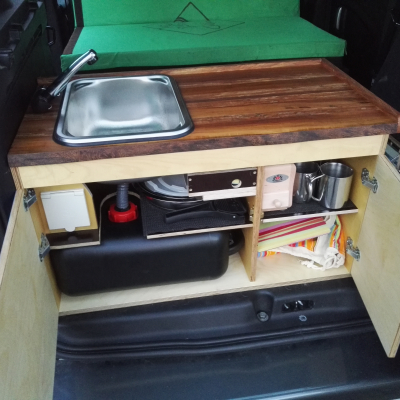 Sehr gepflegter und liebevoll ausgebauter Citroen Berlingo. Mal ein etwas anderer Ausbau. Der Citroen Berlingo wurde Ende 2018 neu ausgebaut und hat ein Dachzelt bekommen. Der Ausbau ist so konzipiert, dass man bei schlechtem Wetter oder wenn es kalt ist unten im Fahrzeug gemütlich sitzen und Kochen kann. Die Küche ist aber auch von hinten als Heckküche nutzbar. Die Schublade mit dem zwei flammigen Gasherd von Primus lässt sich in beide Richtungen ausziehen. Die Arbeitsplatte der Küchenzeile wurde aus edlem Apfelholz gefertigt. Geschlafen wird eine Etage weiter open im Dachzelt. Das Auto hat eine Standheizung, welche unten zum Heizen sowie für die Nacht im Dachzelt genutzt werden kann. Somit ist man für jedes Wetter gewappnet. Für die warmen Sommertage hat die Küchenzeile eine einsteckbare Außendusche. Es ist unter der Sitzgelegenheit ein 30L Frischwassertank und ein 20L Abwassertank verbaut.