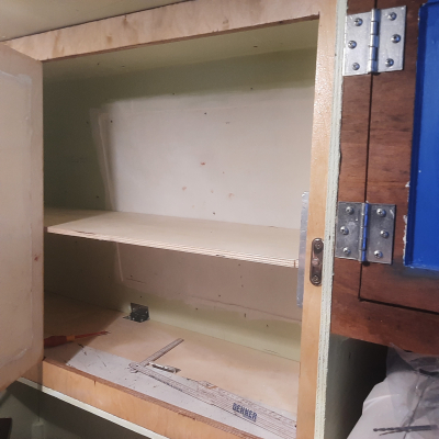 Umbau bzw. Ausbau des Hubbettes und Umrüstung mit herausnehmbaren Polstern der Sitzplätzen im Führerhaus zum Bett. Außerdem habe ich im Aufbau hinten links das Fenster, das nie benutzt wurde ausgebaut und so Platz für einen zusätzlichen Schrank geschaffen. |