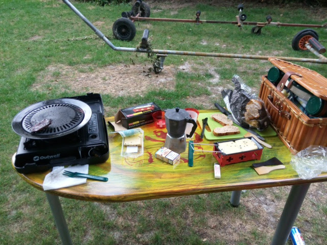 | Kocher | Kartuschenkocher an austellbarem Aussentisch |