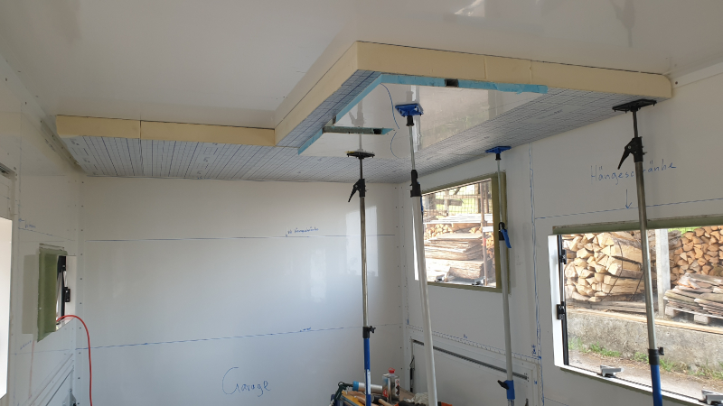 | Art und Stärke der Dämmung | Swisspor Pir mir beidseitiger AluFolie: Decke + Boden: 80mm, Wände 60mm |