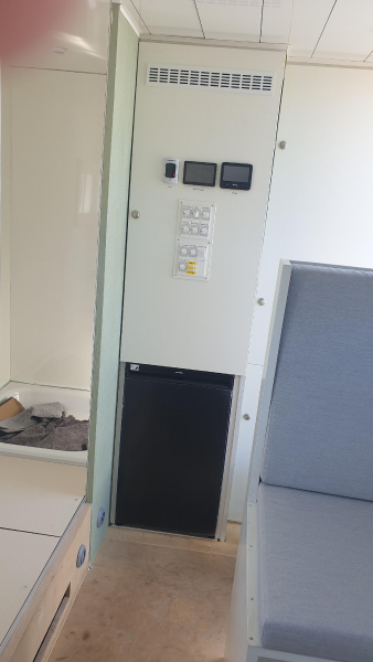 1,3 Kw Solarleistung mit flex-Modulen von Swaytronic, Kochen mittels 2-Platten Induktionsherd, 2 x KS nur elektrisch, Heizung Diesel + 12V + 230V Truma Combi D6 (ich möchte kein Gas im Fahrzeug). Tendenz zu 24V für Ausbau (kleinere Kabelquerschnitte, kleinere Ströme) Ist aber nicht möglich, daher 12V / 24V / 230V. Klimaanlage Dometic Freshwell 3000, Fluchttüre benötige ich nicht: keine Safaris geplant.