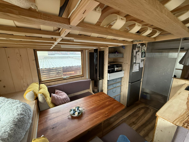 | Hersteller und Typ der Heizung | Die Hauptheizung ist unsere Klimaanlage , Desweiteren habe ich die bereits im LKW vorhandene Dieselstandheizung (Wasser) umgeleitet. Damit ist jetzt möglich die Wohnkabine als einzelne zu beheizen mit Hilfe eines Kühlers und Gebläse. Holzofen. |
