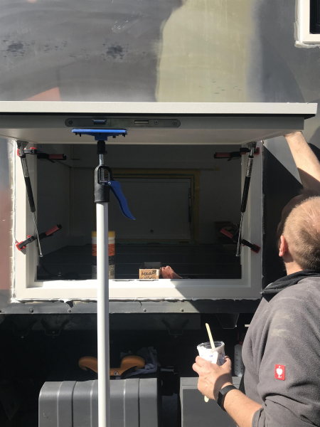 | Stauboxen | Eigenbau Alu-Staubox vor dem Abwassertank |