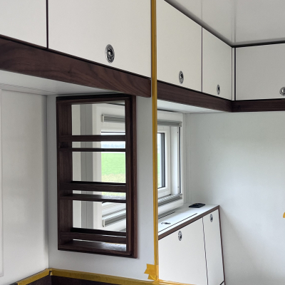 | Material des Möbelbaus | Queenply/Massivholzelemente Nuss |