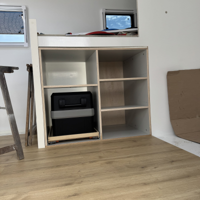 | Zwischenrahmen | einfacher Rahmen von der Box die davor drauf war federgelagert vorne, schubfest hinten |