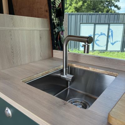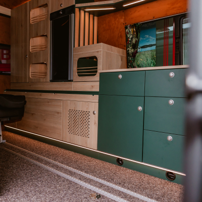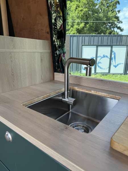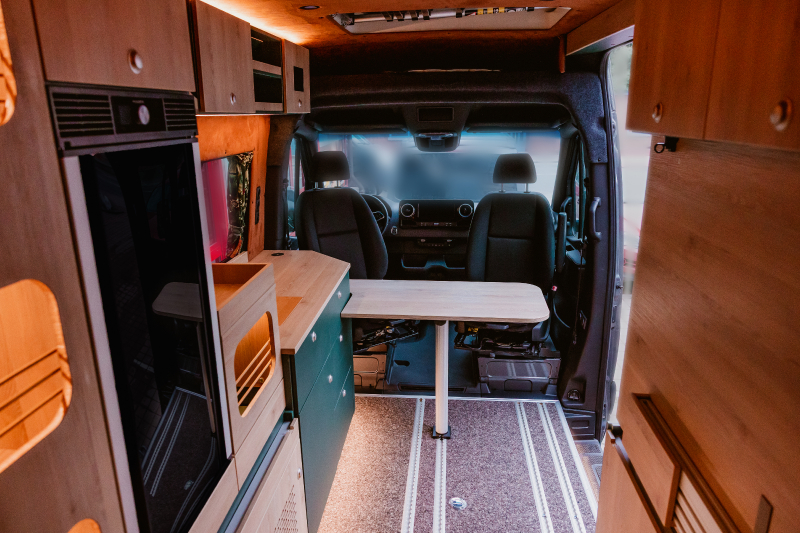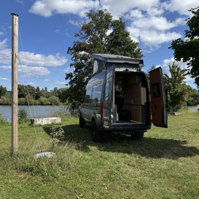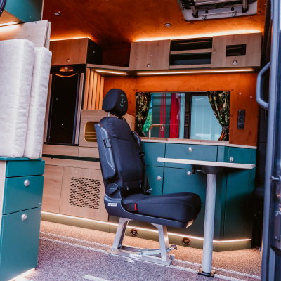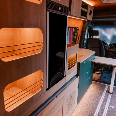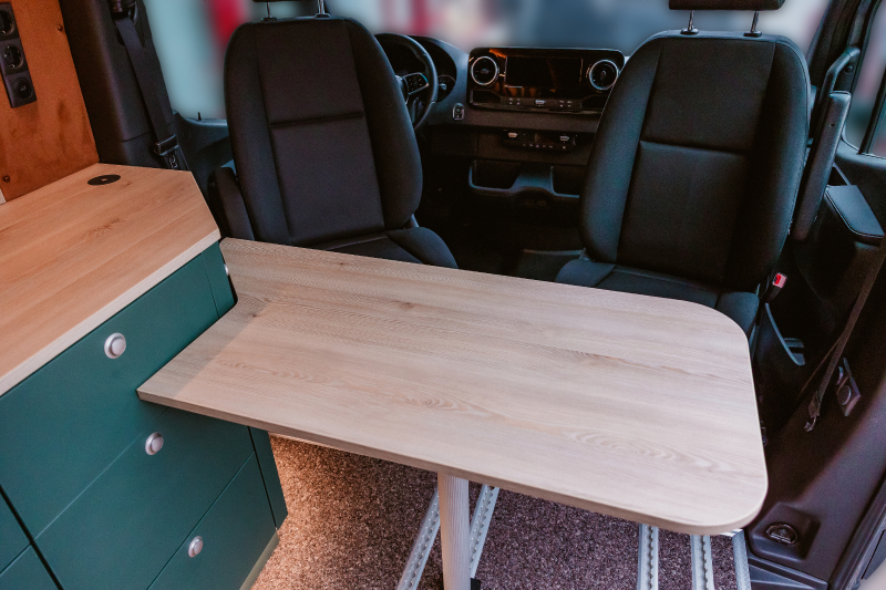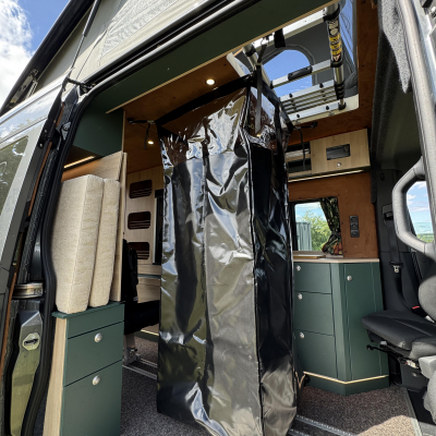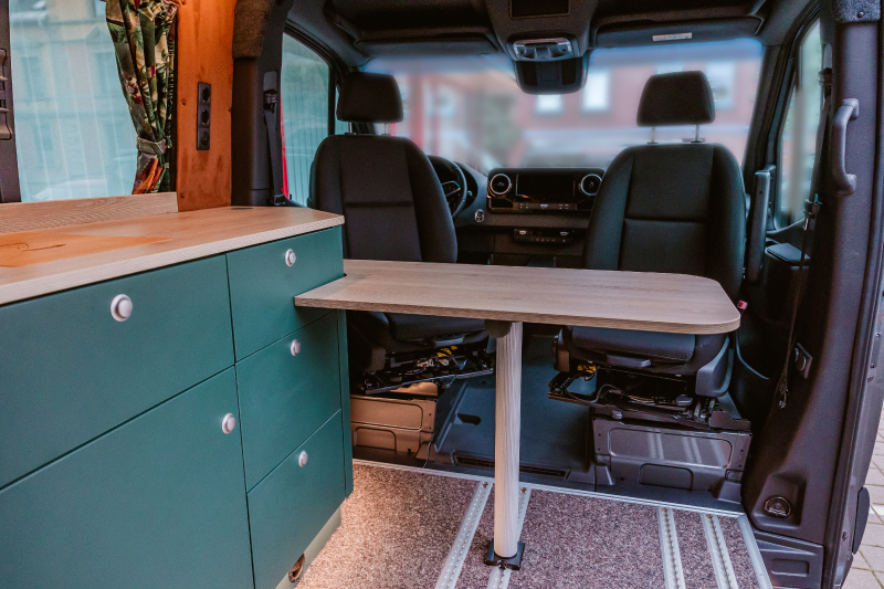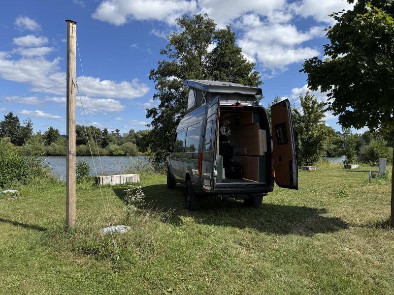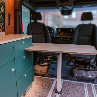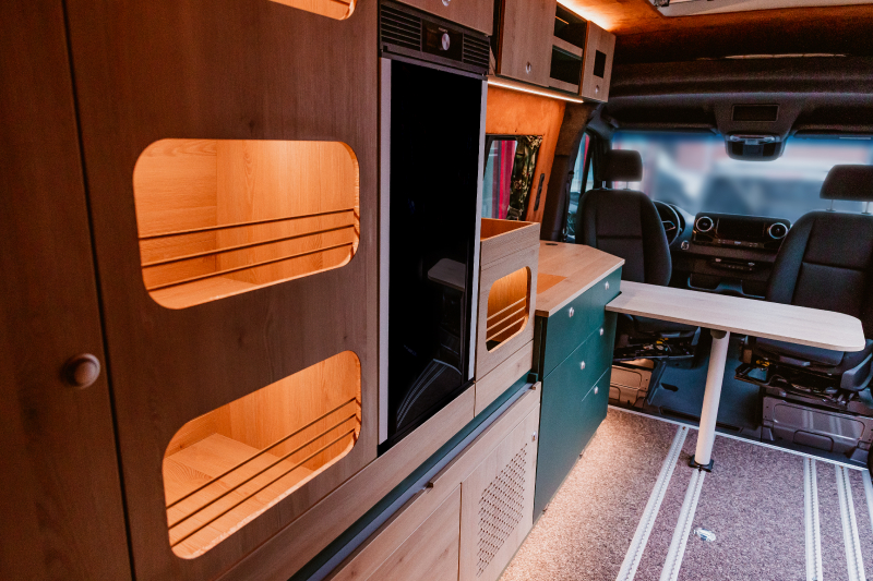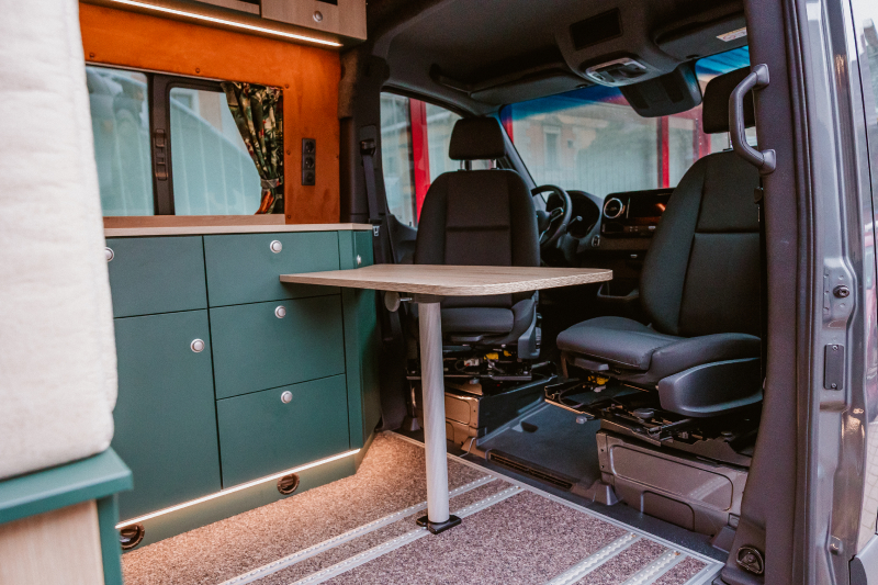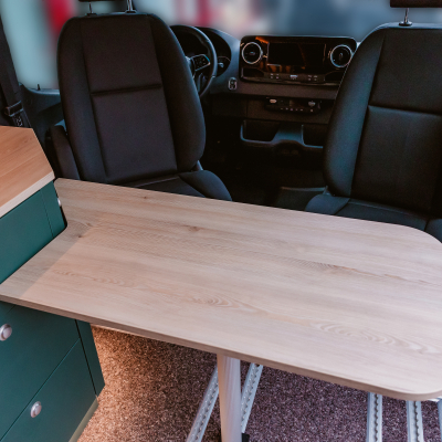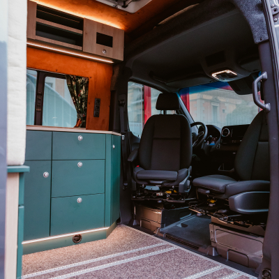 Vorführfahrzeug. Idee: Flexibler Innenausbau mit bis zu 5 zugelassenen Sitzplätzen. Großes Bett im Aufstelldach (135x2100) Zweites Bett im Fahrzeug. Bad: Nasszelle zum Einhängen mit Warmwasser. Küche: Kochfeld herausnehmbar, Dometic Kühlschrank, Spüle Elektrik und Wasser: Basisfahrzeug: Sprinter 419 CDI 4matic AUsstattung: Fahrzeugumbauten: Aufstelldach Unterfahrschutz Fahrwerk Rad/reifen Windenstoßstange mit Warn Evo