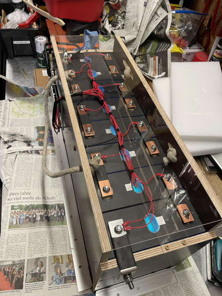 | 8 Zellen von EVE, Akku ist ein Selbstbau und wurde im Sommer 2024 eingebaut | |