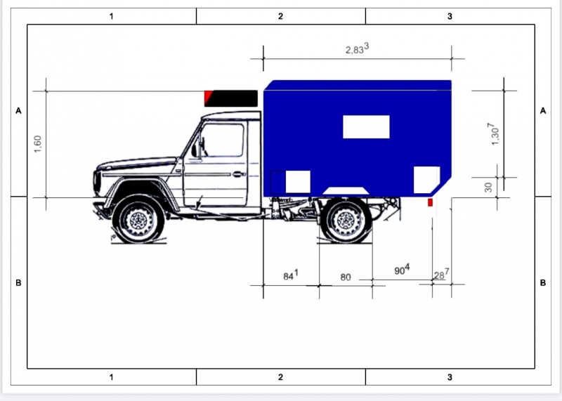 da wir nicht im Klappdach schlafen wollten wird es ein sehr klassischer Innenausbau mit Eckbank / klappbar und somit 135*200cm Bett |