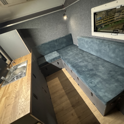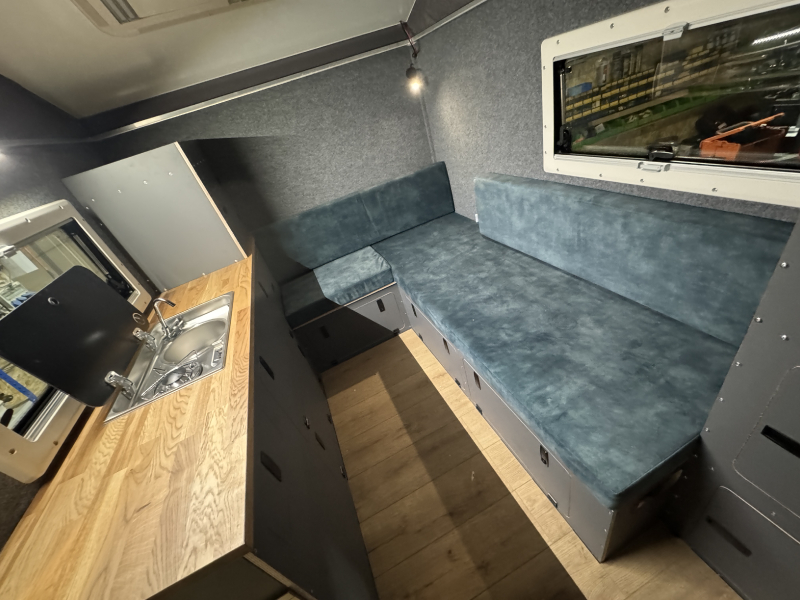 | da wir nicht im Klappdach schlafen wollten wird es ein sehr klassischer Innenausbau mit Eckbank / klappbar und somit 135*200cm Bett |
