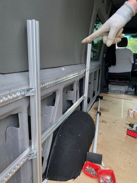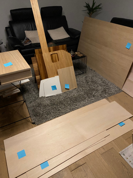 | Material des Möbelbaus | Bett 40er Aluminiumprofil, Schränke 20er Aluminiumprofil, Holzfronten in Queensply, Dibond für dünne Verkleidungen |