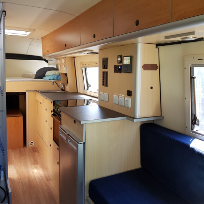 Unsere geliebte Violett wurde nach Schweissarbeiten an der Dachrinne komplett neu ausgebaut. Der alte Ausbau war durch Feuchtigkeit angegriffen. Bei dieser Gelegenheit wurde einiges auf unsere Bedürnisse angepasst.