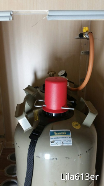2 x 11 KG Flasche. 30mbar Regler. Hauptleitung bis zum Verteiler 10mm Rohr aus Stahl. Ab Verteiler 8mm Rohre Stahl. Verbraucher: Heizung, Kochfeld mit Backofen, Aussen Anschluss für Grill. Gasfernschalter direkt hinterm Fahrersitz schaltbar, da der Gaskasten unterm Bett etwas unbequem zugänglich ist. Prüfanschluss für den netten Ingenieur von der GTÜ ;) |