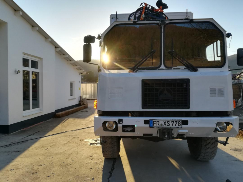Wir haben einen Saurer 6dm umgebaut. Die Kabine ist aus Holz gebaut.