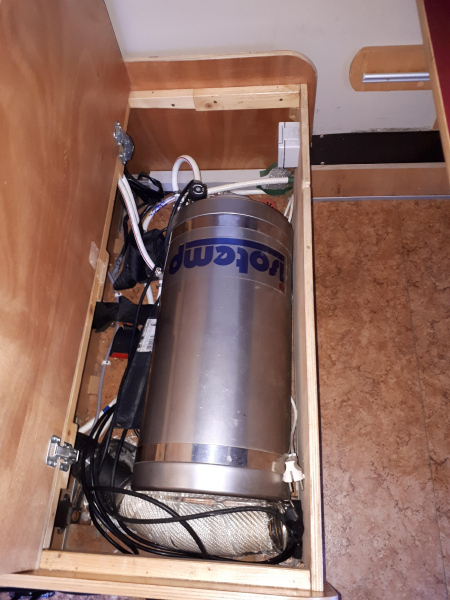 | Warmwasseraufbereitung | Webasto Dieselheizung + 220 Volt, Boiler Isotherm 21 Liter |