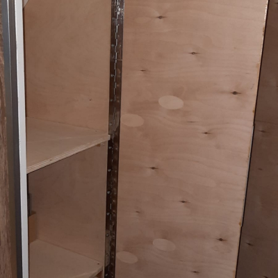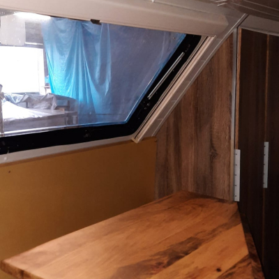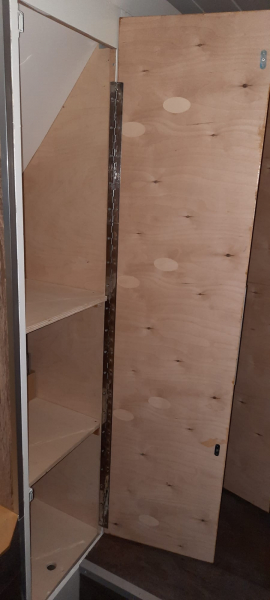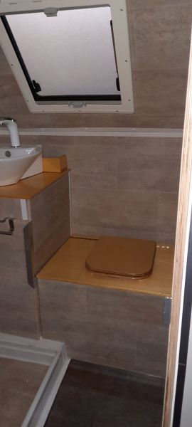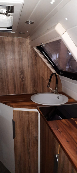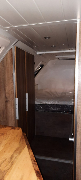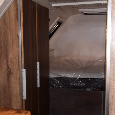 Doppelbett 1.40 x 2.00 m, Waschraum mit Dusche und Trenntoilette 1.20 x 1.20m. Sitzecke mit Platz für 3-4 Personen. Küche mit Spüle und 2,7 kW 2Platten Induktionskochfeld. 2 Kleiderschränke 0.45 x 1.70 m, 1 Kleiderschrank 0.80 x 1.90 m davon 20cm für Elektrik. |