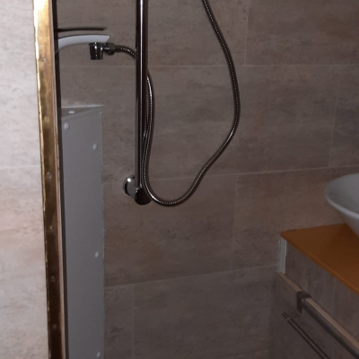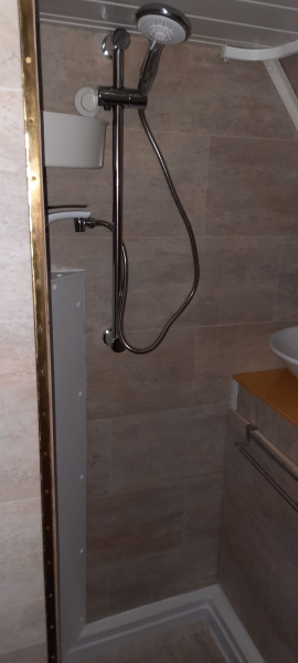 Zusätzlich zur Innenduschen gibt es eine Außendusche warm/kalt zum Duschen und für Reinigungsarbeiten |