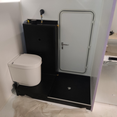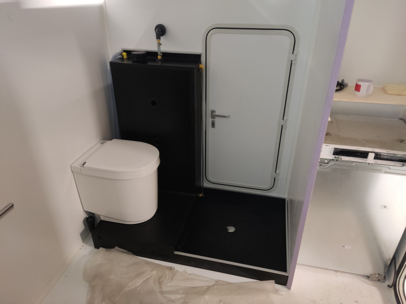 | Abwassertanks für Küche und Bad getrennt im Rahmen. | |