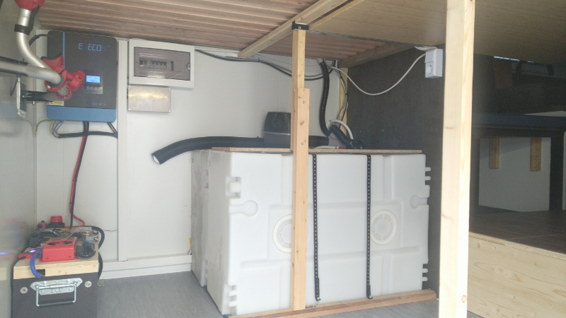 | Geplant ist ein Offgrid-Inverter von https://voltronicpower.com, da diese auch einen Netz-Eingang haben mit einstellbaren Landstrom-Ladestrom (je nach Leistungsfähigkeit des verfügbaren Netzes) Ebenso kann der externe Netzanschluss priorisiert werden oder springt ein, wenn die Akkus leer werden. Es kann auch ein Generator angeschlossen werden und damit die Verbraucher versorgt und die Batterien geladen werden. Ebenso gibt es MPPT-Tracker, die mit relativ niedrigen Stringspannungen arbeiten, sodass zwei oder drei PV-Platten in Reihe ausreichen. | |