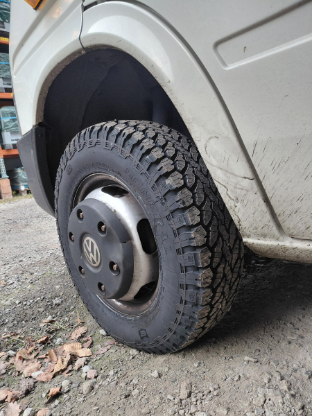 Ehemaliges Polizeifahrzeug .. wurde als materialwagen gebraucht , 220 volt war schon eingebaut . Chassie Leiterrahmen .. habe den LT 46 bei der Firma Travel-Tech um ein paar cm höher stellen lassen .. jetzt sieht er aus wie ein Allradfahrzeug .. leider ist er s nicht , jetzt mit den neuen Pneus nochmal 3 cm höher ... jetz habe ich immerhin mitte Fahrzeug 35 cm Bodenfreiheit , hinten 38 cm ... , es ist ja auch kein Offroadfahrzeug , aber ein bisschen abseits der Strassen unterwegs zu sein ist möglich ...
