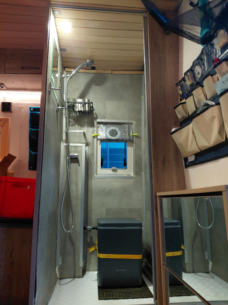Ich bin fertig mit dem Ausbau .. Autark getestet .. hurra es funktioniert alles .... man kann das Bett hinten rausziehen , um allenfalls Service an Geräten zu machen .. oder um andere Ware zu transportieren , zb Kasten , ,Nutzraum von 1,80 m länge , 90 cm breite , und ca 1,,60 m hôhe , .. die Innendusche ist auch die Aussendusche ..habe praktisch keine Feuchtigkeit , kein Kondenswasser , nicht mal beim kochen , auch dank der Dachlucke mit einem Dachventilator, nähe Gasrechaud , wo man beidseitig links , oder rechtsum einschalten kann... die Geräte und Tanks sind auf beiden Seiten unter dem Bett platziert , so habe ich immernoch ein relativ grosser Stauraum , für Klappvelos , Werkzeugkiste , Schaufel , Bergungsmaterial , Teleskopleiter , Auffahrkeile und diversen Campingmaterial ... ja der Stauraum ist mittlerweile voll .. haha .. darum habe ich jetz doch noch ein Dachträger zusammen geschraubt .. auf dem Träger habe ich 2 Boxen mit Holz , 4 Waffelboards, und die Feuerschale befestigt . ich wollte keine feste Leiter montieren , so bin ich flexiebler , auf beiden Seiten aufsteigen.. und im Falle eines Falls könnte man hinten am Heck eine Befestigung anbringen für ein Roller mit zu nehmen , oder sonst was .. was ich bis jetz noch nicht habe ist eine Klimaanlage ..