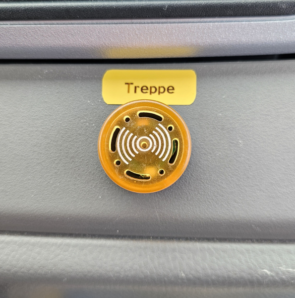 Zwei an Airlineschienen installierte, im eingeklappten Zustand abschließbare Klappleitern (Eigenbau) links und rechts des Fahrerhauses zur Be- und Entladung der Topbox. Notleiter an der Treppe zur Aufbautür für enge Platzverhältnisse, bei denen die Haupteinstiegstreppe nicht ausgezogen werden kann. Osram FX 500 CB SM Fernscheinwerfer-Lightbar am Dachgepäckträger. Airlineschienen an der Innenseite der linken Heckgaragentür zur Montage von Sandboards und einem Behälter zur Aufnahme von 2 Auffahrkeilen. Diverse kleinere Optimierungen wie z.B. aus gekanteten Aluminiumblechen gefertigte Abdeckungen zum Schutz der von außen zugänglichen Starter-Batterien und des von außen zugänglichen Kühlwasser-Ausgleichsbehälters, abschließbare Klappe zur Sicherung des Adblue-Tankdeckels, Astabweiser an der Markise, etc. Ein Sensor (Reedkontakt) zur Anzeige einer nicht eingefahrenen Eingangstreppe, der bei eingeschalteter Zündung eine LED-Warnleuchte mit integriertem Summer im Fahrerhaus aktiviert, wurde nachgerüstet. | |