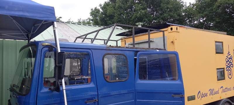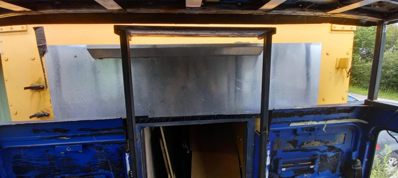 Im Moment alles ist im Shelter -> 2 Kinderbetten, Elternbett, Küche, WC/Dusche, Schränke, Wasser, Gas... Wir bauen um so dass im Fahrerhaus ein Kinderzimmer entsteht. |