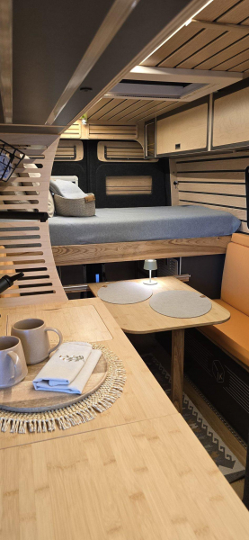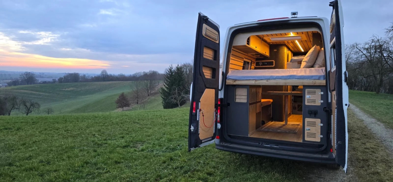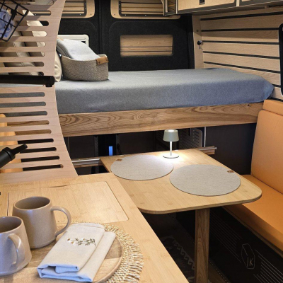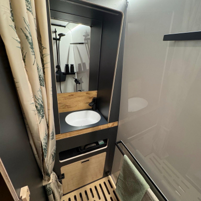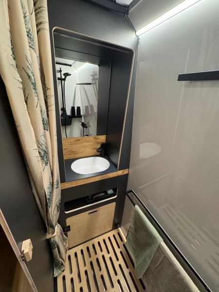 Unser Camper ist voll autark nutzbar - Solar, Lithium-Batterie, Frisch- & Abwassertanks - perfekt für Abenteuer abseits der Campingplätze. Ein echtes Unikat, gebaut mit Leidenschaft & Liebe zum Detail. WOHN-/ SCHLAFBEREICH * Bett (160x200, ausziehbar) * Sitzbänke (110 + 90 cm) * Flexibler Esstisch (innen/außen, klapp- & höhenverstellbar) * 4 Hängeschränke (Softclose) * 2 Kleiderschranke (3 Stangen) * Panorama-Dachfenster E TECHNIK * Lithium-Akku-Box (LiFePO4 - 200 Ah) * 2x 120 W Solarmodule * Heizung + Warmwasser-Boiler (Aqua-Hot, Diesel & Strom) * Frischwassertank 95 | + Grauwassertank 85 | (mit Filter & Anzeige) * Front-Arbeitsbeleuchtung & Markenbeschlage *BAD * Dusche (110x70) mit Holzrost * Waschbecken * Ausziehbare Trenntoilette (mit Belüftung & Streugut-Fach) * Dachfenster * KÜCHE * 2-Brenner-Gaskochfeld (CADAC Dometic) * 4 Schubladen (Tip-On) * Schwarzes Edelstahl-Spülbecken * Durchgehende Arbeitsplatte * Dometic Kühlschrank (beidseitig zu öffnen)