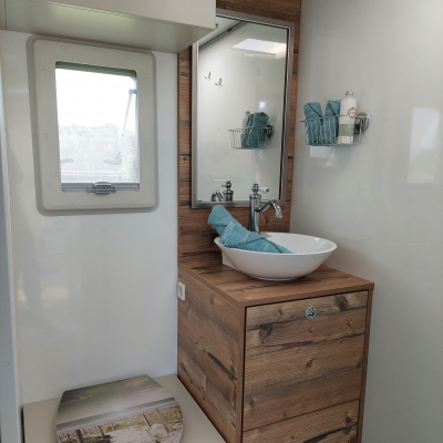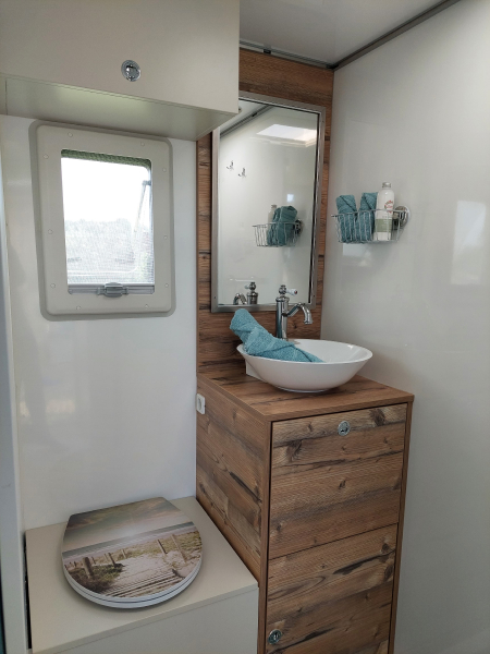 – Großzügige Dachluke im Bad und über dem Bett mit Fliegengitter & Verdunklung