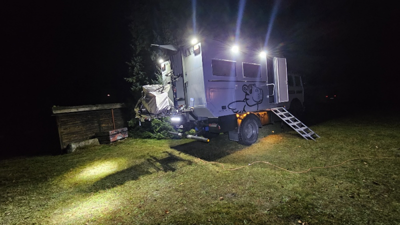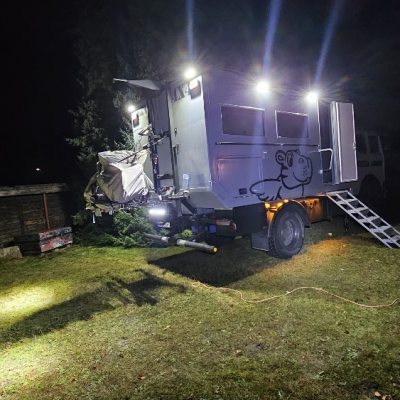 Hobby hängt hinten an: Kleines Ultraleichflugzeug: Motorschirmtrike XCitor für 2 Personen. Auf dem Dachträger baugleiche 24V Seilwinde wie im Heck für Reserverad. Ansonsten ist an Technik im Koffer verbaut: Staubox Klima, WLAN Router Netgear Nighthawk M2, Beamer XGIMI Elfin und Leinwand, Smarter Rauch und CO Melder von Netatmo, Alexa Sprachsteuerung, Ventilatoren, LED Leuchten hinten, Aussenbeleuchtung, Beleuchtungssysteme innen direkt und indirekt, dimmbar, 12V Dosen mit USB C Ladegerät und PD 3.0 an allen Ecken, CTEK Ladegerät für Heckspielzeug, Wasserpumpenschalter und vieles mehr, an das ich grad nicht denke. | |