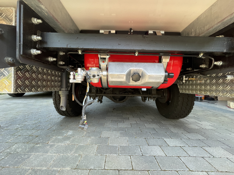 60l Brennstofftank mittig hinter der Achse verbaut, das entspricht etwas mehr als 2 x 11kg Gasflaschen. |