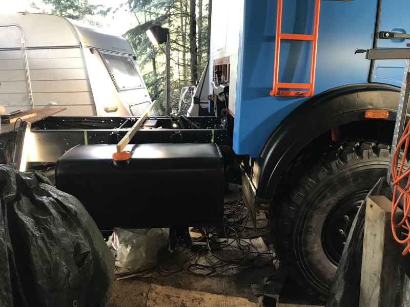 Klappbarer Unterfahrschutz Halter für eine Hängematte....auf jeden Fall auf der Beifahrerseite am Koffer, vielleicht sogar irgendwie über dem Fahrerhaus.... | |