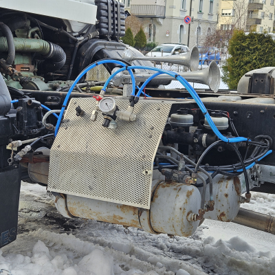 4 Stauboxen am Rahmen, inkl. Reifenfüllanlage (als Option erhältlich), um alle 4 Reifen gleichzeitig aufzupumpen oder abzulassen.
