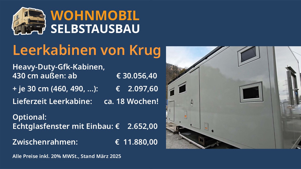 Ausbautipp: Gfk-Leerkabinen von Krug in weltreisetauglicher Heavy-Duty-Qualität ... vielleicht noch stabiler als Alu