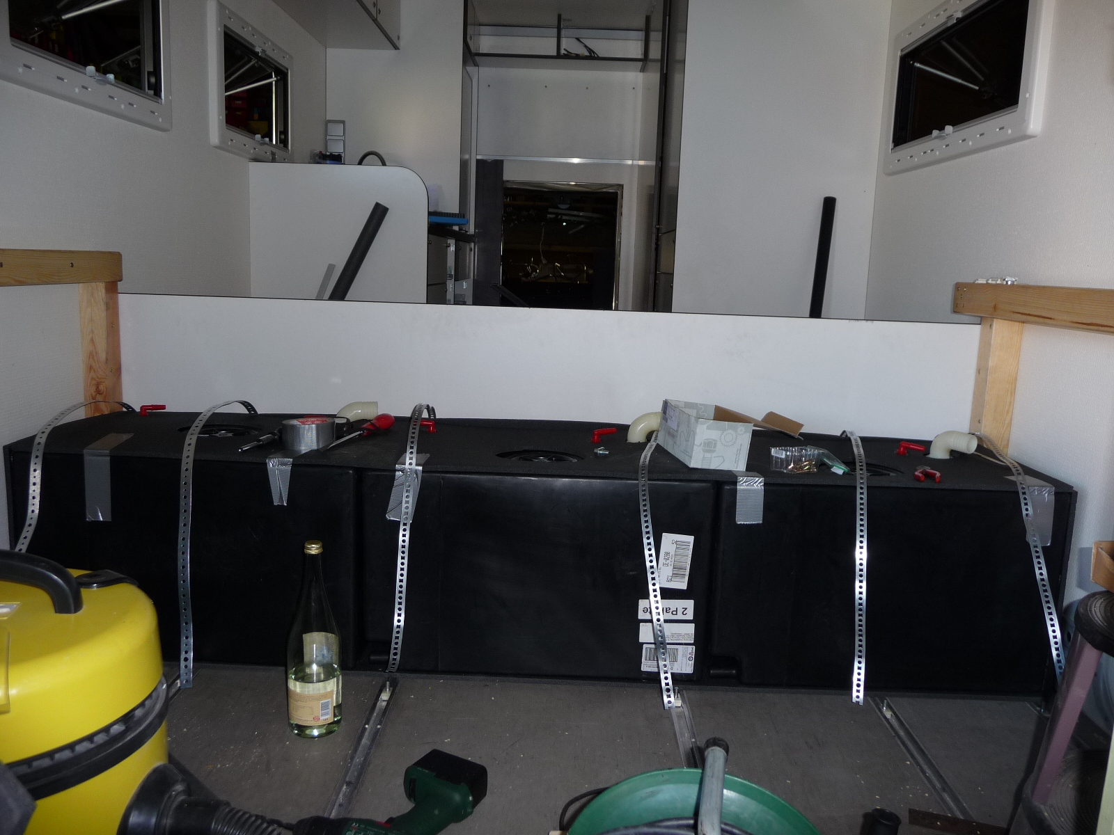 Über den Wassertanks verbaue ich einen Zwischenboden, damit der Stauraum besser genutzt werden kann.