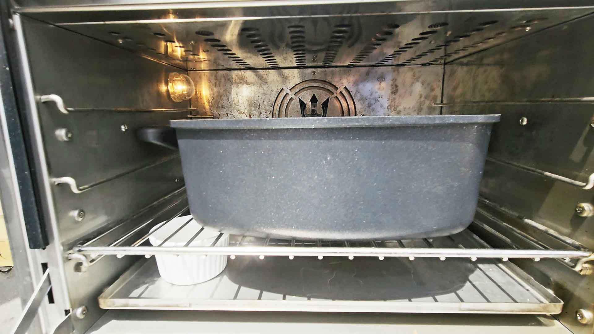 Der Ofen läuft auf Umluft: das bedeutet, dass die Hitze überall gleichmäßig im Backofen verteilt wird.