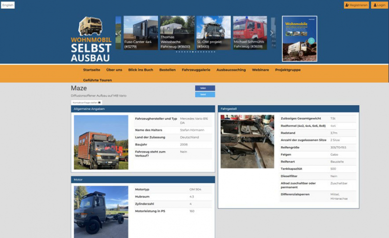 Stefan Hörmann hat seinen MB Vario in unsere Galerie für individuell gebaute Reisemobil eingestellt und beschreibt das Fahrzeug mit 63! Bildern. In der Galerie findest Du weitere 912 Reisemobile, 127 davon stehen zum Verkauf.